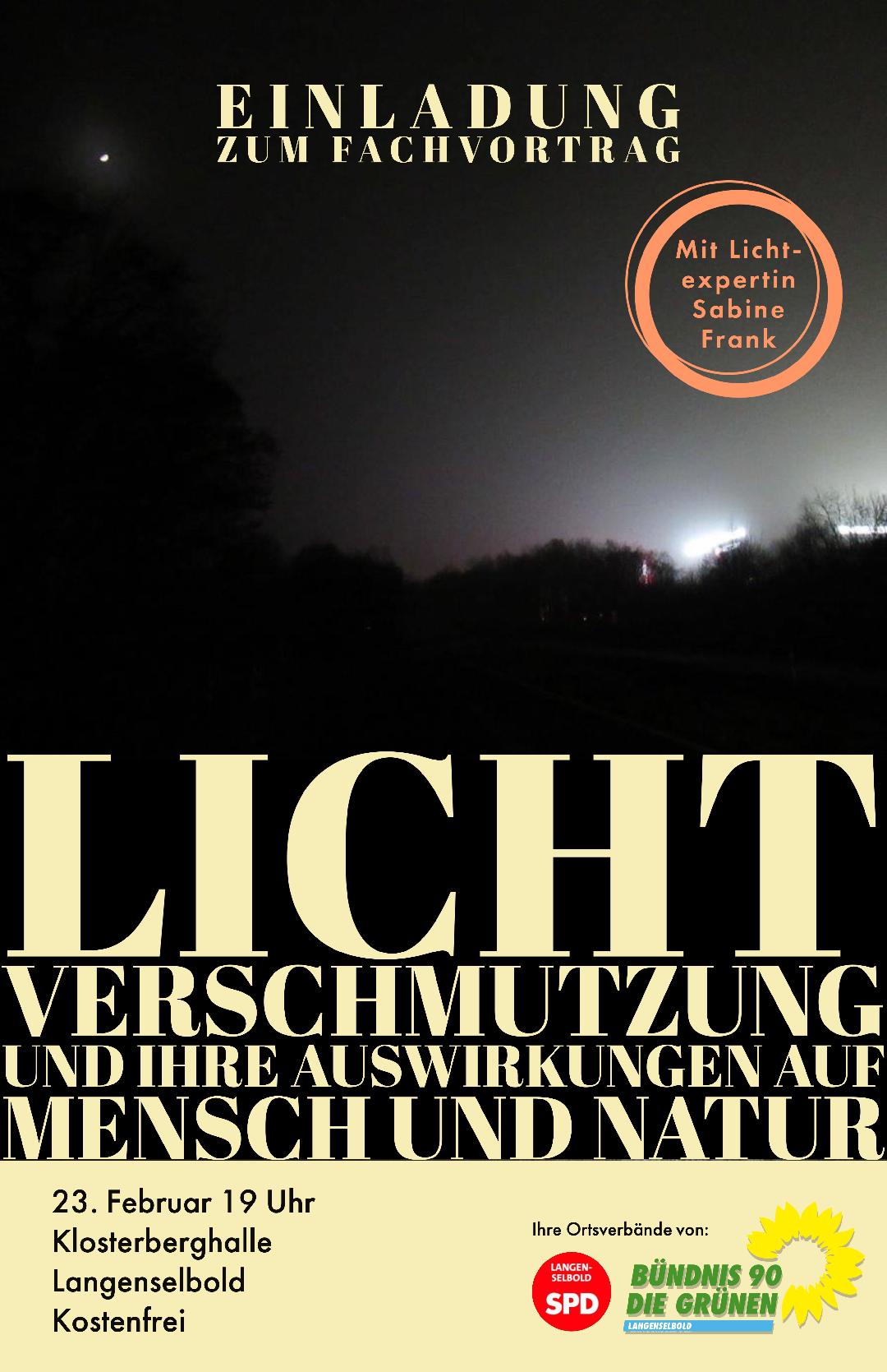 Wir laden Sie herzlich ein zu einem spannenden Fachvortrag zum Thema Lichtverschmutzung am 23. Februar 2023 um 19 Uhr in die Klosterberghalle ein!