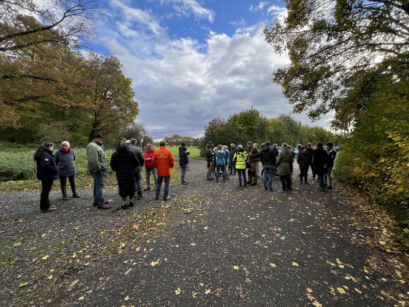 Mehr als 30 Zuhörer fanden sich bei herbstlichen Wetterverhältnissen ein, um zu erfahren, wie der Zustand des Waldes aus Sicht eines Experten beurteilt wird und mit welcher Intention überhaupt das Engagement eines solchen externen Fachmanns beschlossen wurde, da der Langenselbolder Wald ja seit langer Zeit vom Landesbetrieb HessenForst betreut wird.